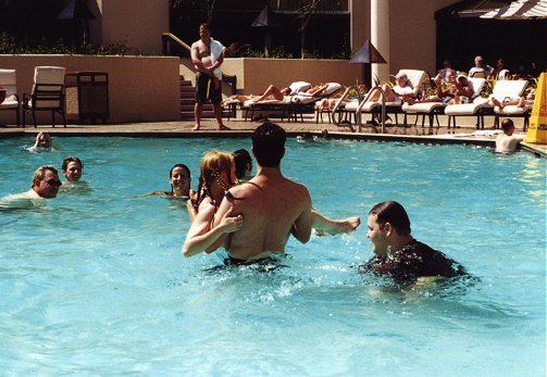 Saturday. The pool wrestling match.